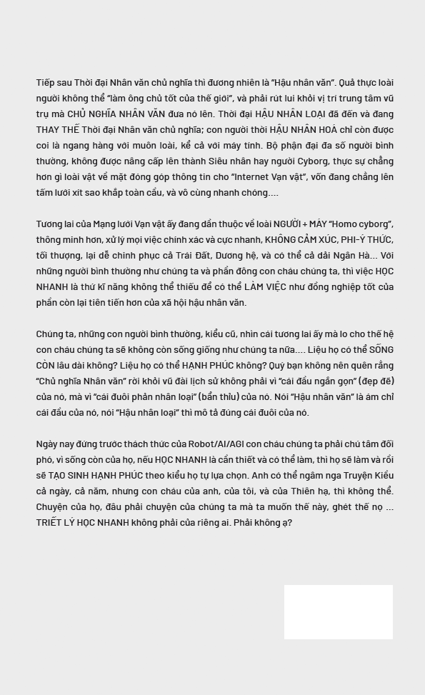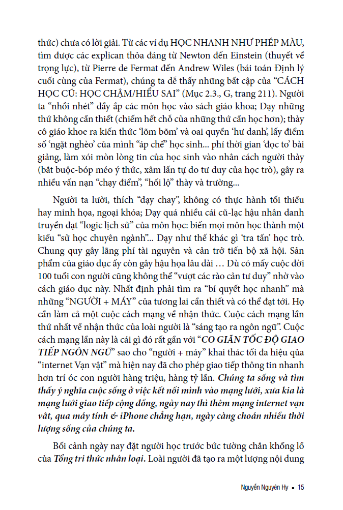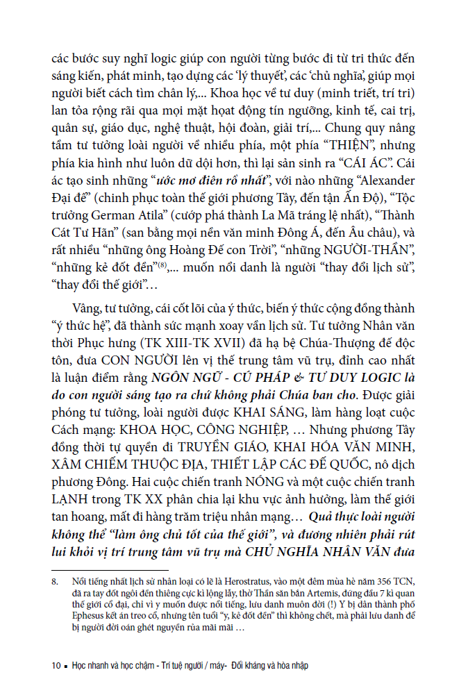 Cuốn sách phân tích sâu sắc mối quan hệ giữa trí tuệ con người và trí tuệ nhân tạo trong thời đại bùng nổ thông tin. Tác giả chỉ ra rằng khi lượng tri thức toàn cầu tăng trưởng theo cấp số nhân, con người không còn khả năng “học hết”, mà phải biết học nhanh, chọn lọc và học đúng cách.
