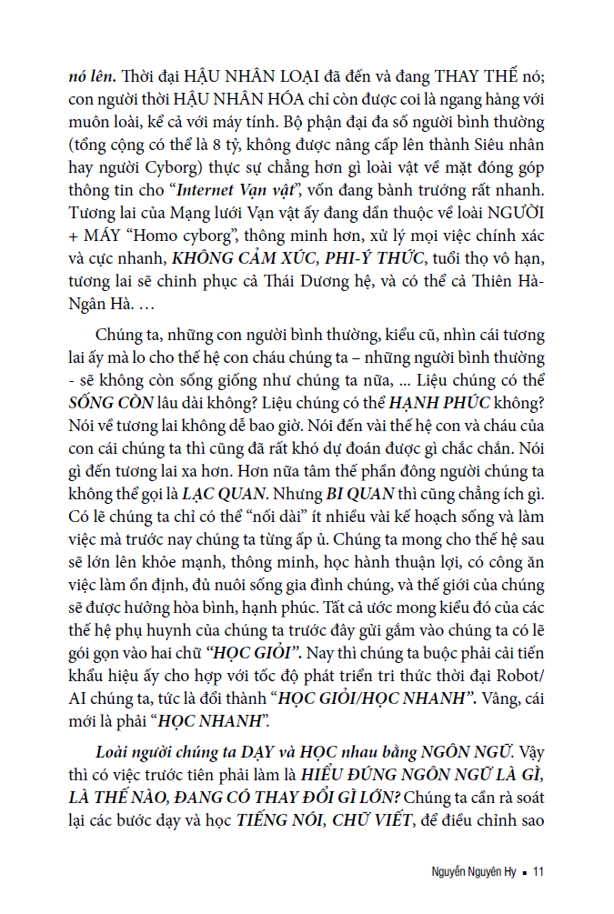 Thông qua các góc nhìn liên ngành từ ngôn ngữ học, khoa học não bộ, công nghệ thông tin đến giáo dục, sách làm rõ các rào cản trong tư duy, nhận thức và cách con người tiếp cận tri thức. Đồng thời, tác phẩm đặt ra vấn đề cấp thiết: làm thế nào để con người không bị “chìm trong biển thông tin” mà vẫn làm chủ tri thức trong kỷ nguyên AI.